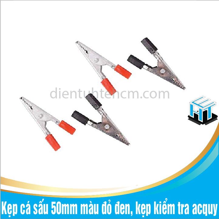 Kẹp cá sấu 50mm màu đỏ đen, kẹp kiểm tra acquy