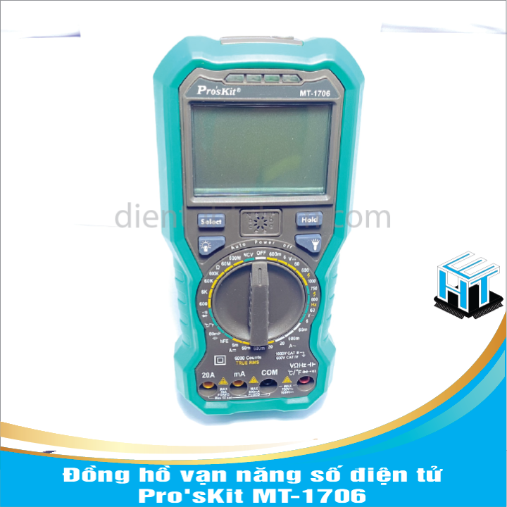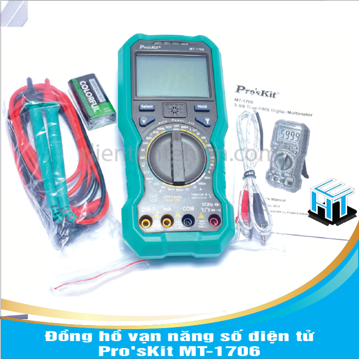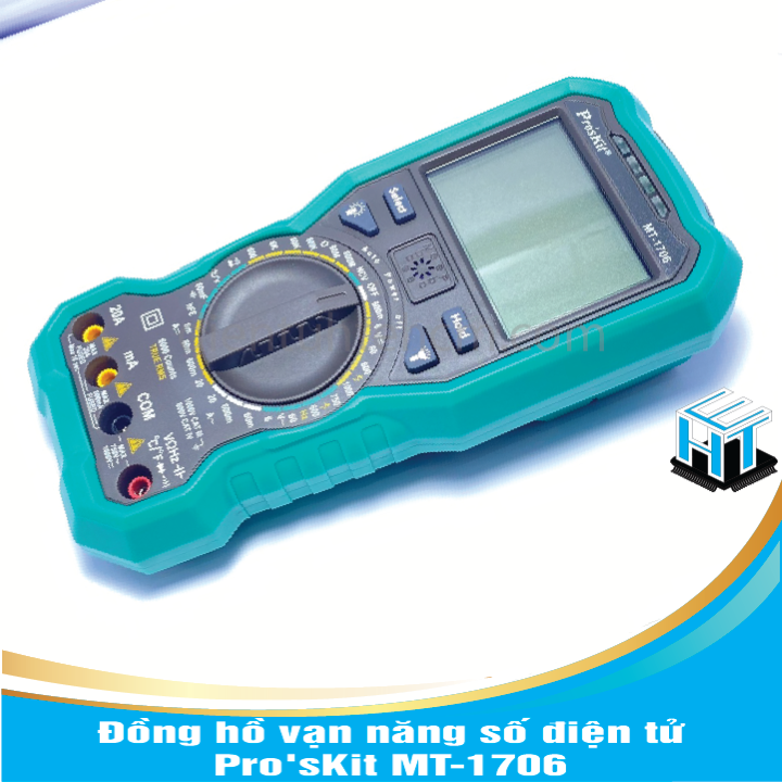 - Đồng hồ vạn năng Pro'skit MT-1706 (True RMS) là thiết bị được sản xuất bởi thương hiệu Pro'skit của Đài Loan. Là mẫu đồng hồ vạn năng số giá rẻ nhưng nó lại mang đến đầy đủ các chức năng cần thiết phục vụ cho quá trình sửa chữa điện, điện tử cơ bản như: