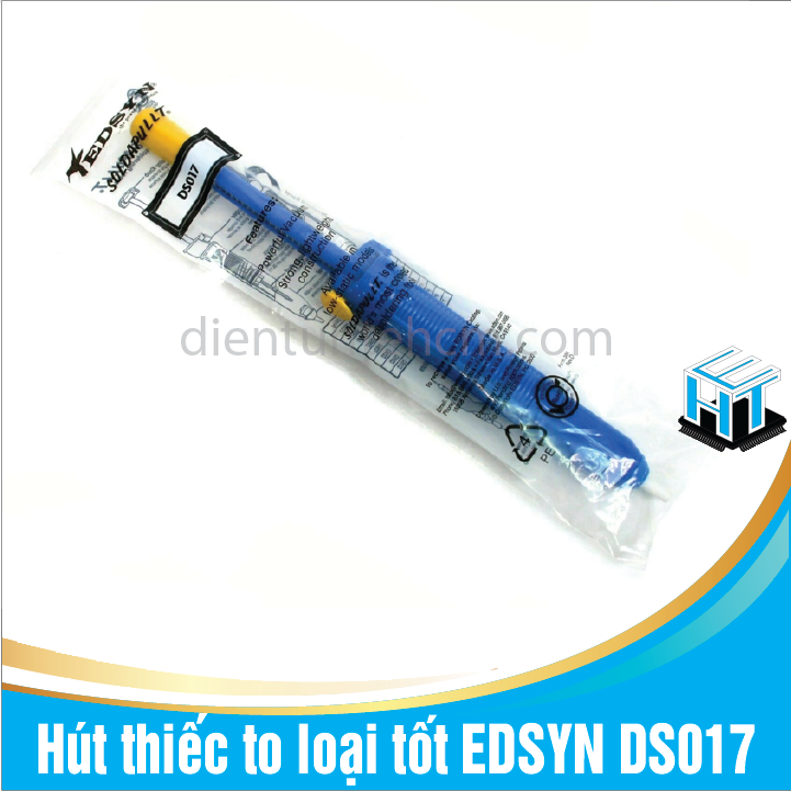 • Hút thiếc DS017 có giá thành phải chăng được sử dụng thể tháo linh kiện điện tử ra khỏi mối hàn bằng cách làm chảy chì bằng mỏ hàn sau đó đưa hút chì vào mối hàn đang nóng chảy và thực hiện thao tác hút để lấy chì ra khỏi mối hàn giúp tháo gỡ linh kiện điện tử một cách dễ dàng.