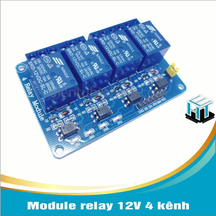 • 4 relay thích hợp với ngõ vào AC 250V 10A và DC 30V 10A, với Opto cách ly bảo vệ. điều khiển 12V