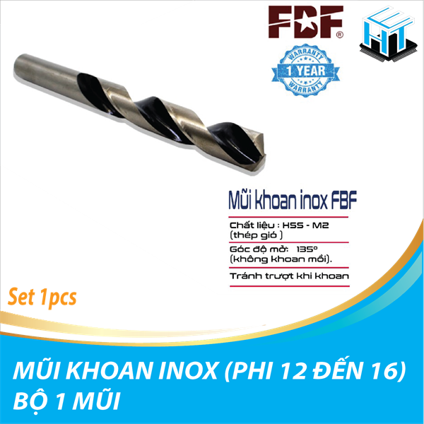 1. Mũi khoan inox FBF được làm từ chất liệu thép gió HSS - M2 chuyên dụng sản xuất mũi khoan cao cấp, với độ cứng cao. Được chế tạo từ máy CNC cho ra độ chính xác và sắc bén nhất. Bên ngoài phủ một lớp Oxit giúp mũi khoan chống ăn mòn và khoan được sắc hơn.