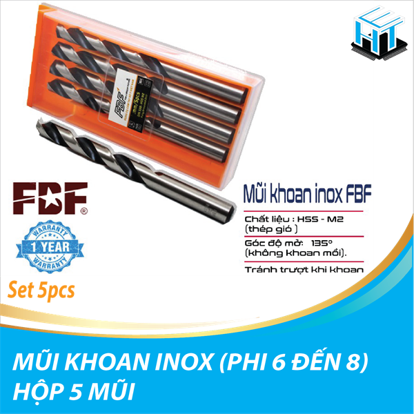 1. Mũi khoan inox FBF được làm từ chất liệu thép gió HSS - M2 chuyên dụng sản xuất mũi khoan cao cấp, với độ cứng cao. Được chế tạo từ máy CNC cho ra độ chính xác và sắc bén nhất. Bên ngoài phủ một lớp Oxit giúp mũi khoan chống ăn mòn và khoan được sắc hơn.