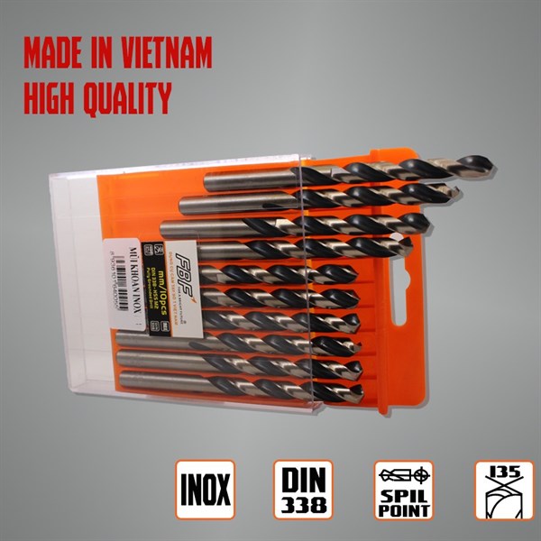 1. Mũi khoan inox FBF được làm từ chất liệu thép gió HSS - M2 chuyên dụng sản xuất mũi khoan cao cấp, với độ cứng cao. Được chế tạo từ máy CNC cho ra độ chính xác và sắc bén nhất. Bên ngoài phủ một lớp Oxit giúp mũi khoan chống ăn mòn và khoan được sắc hơn.