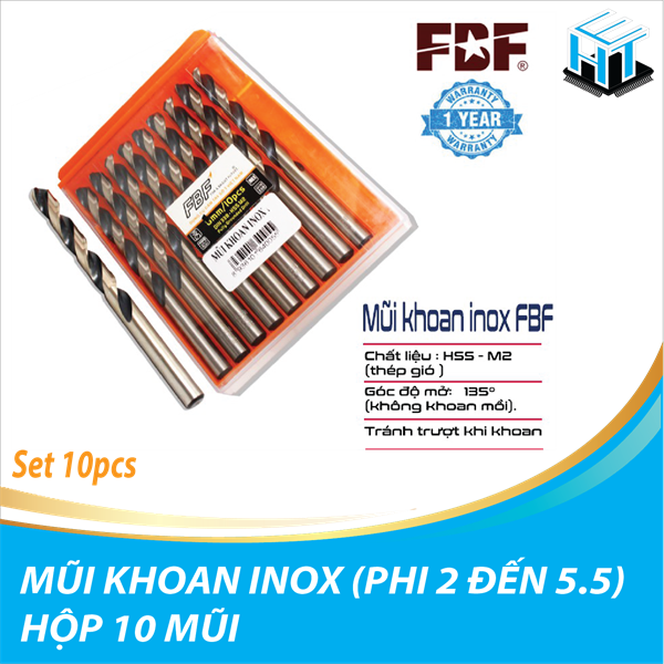 1. Mũi khoan inox FBF được làm từ chất liệu thép gió HSS - M2 chuyên dụng sản xuất mũi khoan cao cấp, với độ cứng cao. Được chế tạo từ máy CNC cho ra độ chính xác và sắc bén nhất. Bên ngoài phủ một lớp Oxit giúp mũi khoan chống ăn mòn và khoan được sắc hơn.