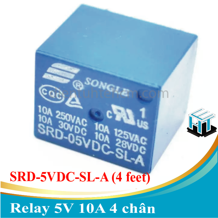 Relay 5V 10A 4 chân SRD-5VDC-SL-A Relay Songle được sử dụng để đóng cắt các thiết bị điện hoạt động ở điện áp lên đến 250V và chịu dòng điện lên tới 10A. Là linh kiện để thay thế hoặc sửa chữa cho thiết bị điện tử mà được những người làm...
