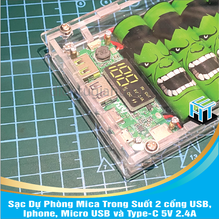Sạc Dự Phòng Mica Trong Suốt 2 cổng USB, Iphone, Micro USB và Type-C 5V 2.4A (Skin ngẫu nhiên) *** Lưu ý khi mua hàng: Quý khách chọn dung lượng trong phần phân loại, số cell pin tương ứng = dung lượng / 2000 Mặc định Shop chọn ngẫu nhiên skin bọc cho...