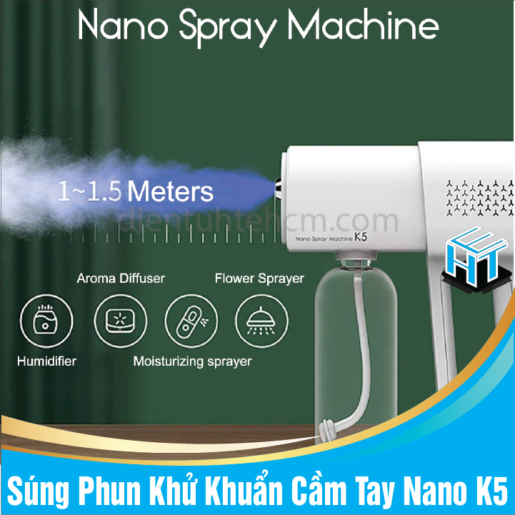 Súng xịt khử khuẩn cầm tay Nano K5 là thiết bị dùng điện để phun các loại dung dịch sát khuẩn như Arusan, Chloramin B,.... Thiết bị có thiết kế tiện lợi với khả năng phun mạnh giúp diệt virus nhanh trong môi trường xung quanh. Vì vậy, thiết bị thích hợp cho gia đình, cửa hàng, văn phòng, xe hơi, đi du lịch, khử trùng quần áo, nhà vệ sinh…