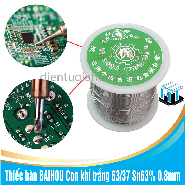 Thiếc hàn BAIHOU Con khỉ trắng 63/37 Sn63% 0.8mm cuộn 900g