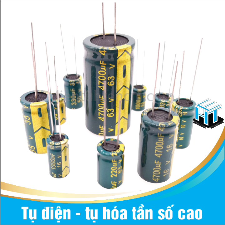 Tụ hóa là tụ phân cực, có dung môi là một lớp hóa chất. Tụ hóa là tụ có hình trụ, trị số được ghi trực tiếp trên thân tụ. Sau trị số điện dung bao giờ cũng có giá trị điện áp, điện áp ghi trên tụ chính là điện áp cực đại mà tụ có thể chịu được, vượt qua giá trị này thì lớp cách điện sẽ bị đánh thủng , trong thực tế ta phải lắp tụ có trị số điện áp cao gấp khoảng 1,5 lần điện áp của mạch điện.